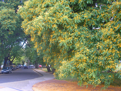 Sus flores pueden ser rosadas o amarillas y embellecen varios parque de la ciudad, al igual que la Av. 9 de Julio.