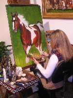 Fue interesante ver pintando en vivo a la artista Carola Güiraldes, portadora de este apellido ilustre que nos recuerda a Ricardo Güiraldes, autor de Don Segundo Sombra , a quien la unen lazos de sangre. Sin saber este detalle, nos atrajo su muestra de pintura campestre en la que se destacan bellísimas pinturas de caballos, entre otras, haciendo que la artista se destaque independientemente de su apellido.