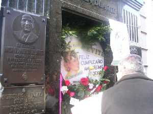 Los turistas extranjeros que generalmente visitan el Cementerio de Recoleta, siendo uno de los motivos principales conocer el lugar donde descansa "la abanderada de los humildes", en esta oportunidad, pudieron ser partícipes del homenaje. Evita nació el 7 de mayo de 1919 en General Viamonte, provincia de Buenos Aires, en la Estancia "La Unión", frente a las tolderías de los Indios Coliqueo, a veinte kilómetros de la localidad de Los Toldos. Hija de Juan Duarte y Juana Ibarguren, fue bautizada en la Iglesia Parroquial de Los Toldos, el 21 de Noviembre de 1919 y a los 7 años tomó su primera comunión en la Iglesia del Pilar. En enero de 1944, Eva Duarte conoce al coronel Juan Domingo Perón en un festival que la comunidad artística realizaba en beneficio de las víctimas de un terremoto que había destruido la ciudad de San Juan pocos días antes. Al mes siguiente ya vivían juntos y dos años más tarde regularizaron la relación, contrayendo matrimonio en una ceremonia íntima. Evita, como el pueblo la bautizó, fue una figura que rompió todos los precedentes históricos y definió una modalidad política nunca vista hasta entonces. Durante el breve período de su actuación, al lado de Perón, fue el centro de un creciente poder y se convirtió en el alma del movimiento peronista, en su esencia y en su voz. A ella se debe la ley del voto femenino. El 23 de setiembre de 1947, en un acto frente a la CGT, el presidente Perón le entregaba a Evita el decreto del Ejecutivo que lo convertía en ley 13.010. Luego del complejo proceso de empadronamiento femenino, las mujeres votarían por primera vez en el año 1951.