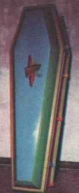 Féretro de colores y un barquito en la tapa,