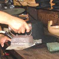 Luego, dependiendo del modelo y medida, se elige la horma, que se coloca en la copa, se sujeta con hilo, se pone al vapor, para darle flexibilidad y forma.