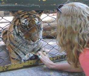 El broche de oro, fue conocer a una bellísima tigresa de Bengala, llamada Violeta, a quien pude mirar a los ojos y descubrir una mirada serena, alejada de la ferocidad y que me olfateaba a través de la reja. Con permiso de su cuidador y dadas las condiciones, ya que en ese momento no había otras personas presentes en el lugar, pude acariciar sus patitas que asomaban por la reja.