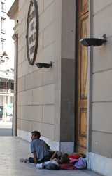 También en la zona de Plaza de Mayo hemos visto gente que duerme en la plaza, en la recova del cabildo y en la Catedral, donde los escalones de acceso y el peristilo quedan en un estado desastroso, sucio, con olor a orín y desperdicios de todo tipo. Otro tanto ocurre en la recova de la avenida Paseo Colón, en la que una seguidilla de hombres, perros, colchones y botellas de bebidas alcohólicas están diseminados en varias cuadras.