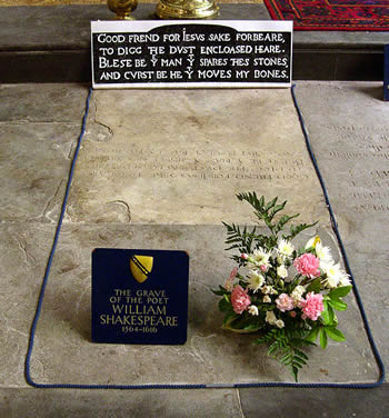 Según la Enciclopedia Británica, el propio Shakespeare habría compuesto el siguiente epitafio para su lápida: Buen amigo, por Jesús, abstente